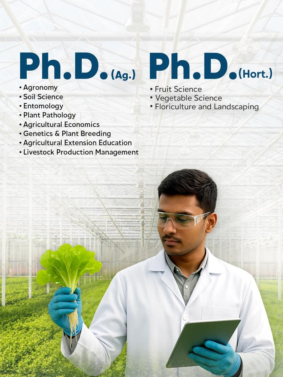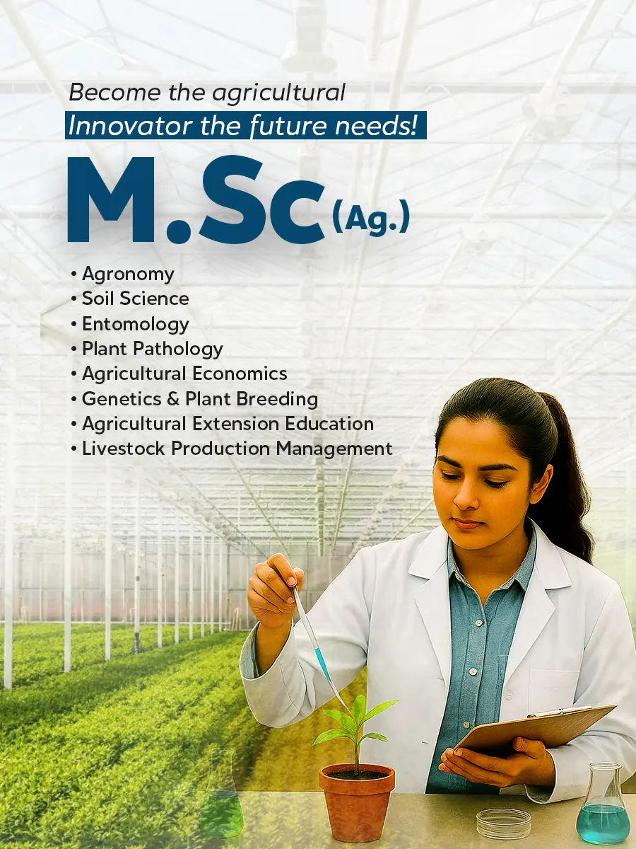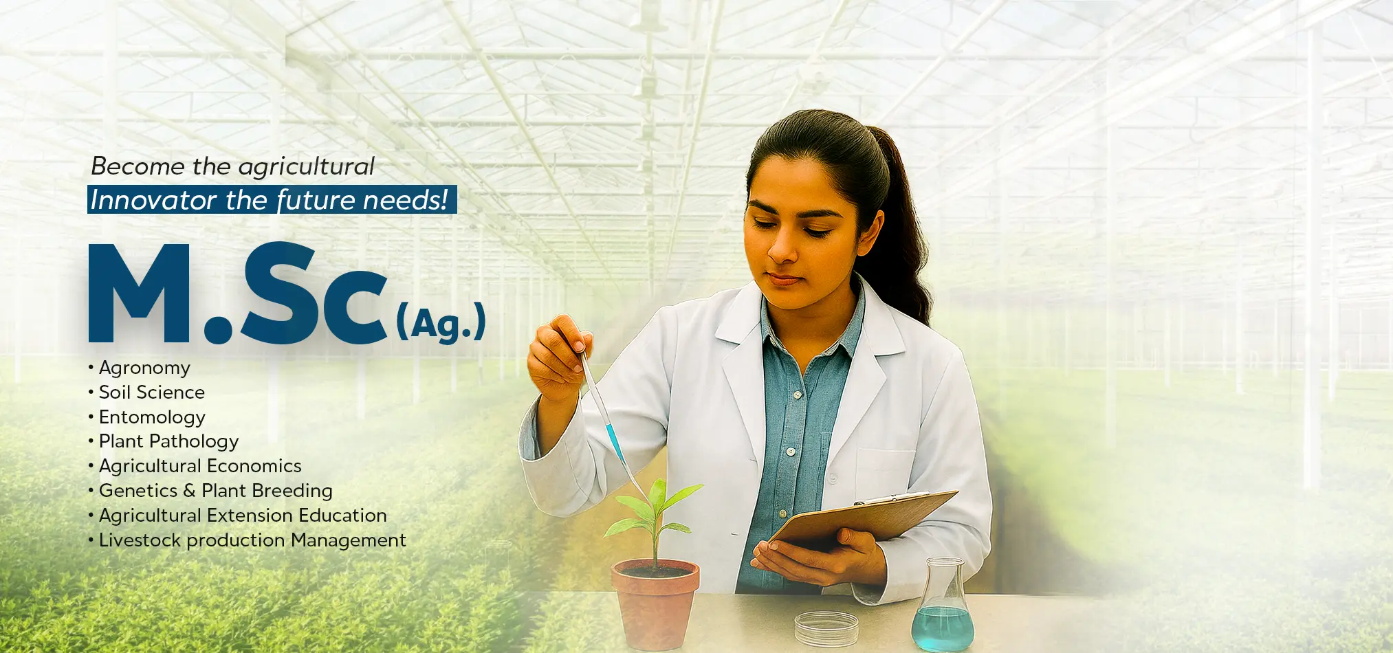 Specializations: Agronomy | Soil Science | Genetics & Plant Breeding | Plant Pathology | Entomology | Agricultural Extension Education | Agricultural Economics | Livestock Production Management